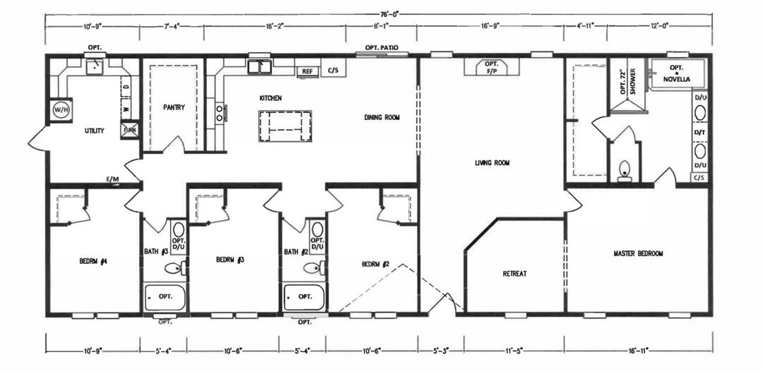 4 Bedroom 3 Bath. Size 32×76